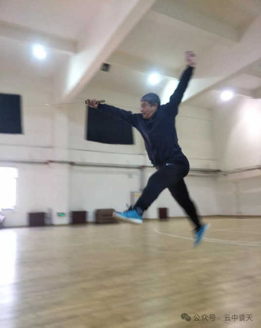 王成太极剑的整个套路快慢相间,节奏分明,式与式之间的衔接精巧又简洁。如古树盘根之后的饿虎扑食,横扫千军接下来的金针倒挂等动作,大开大合,张驰有度,虚中有实,实中有虚,虚实转换,灵活自然;而整体上又如长江大河般大气磅礴,气势连贯,汩汩滔滔,绵绵不绝。
